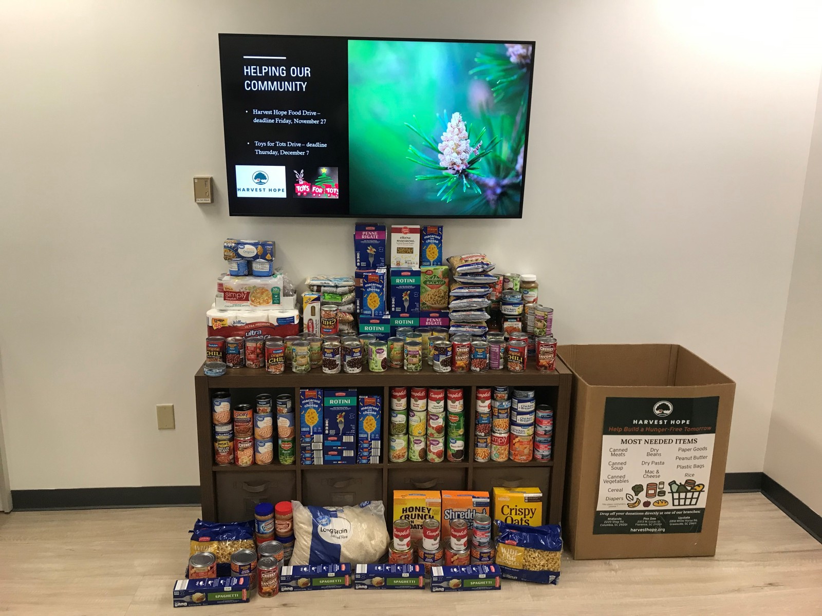 - Greenville donated toys to its local U.S. Marine Corps Toys for Tots foundation. They also collected hundreds of food items for Harvest Hope Food Bank.