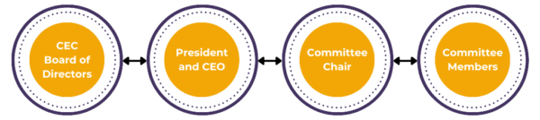 The CEC Board of Directors has the overall authority for the existence of CEC’s ESG Committee and its responsibilities. CEC’s President & CEO provides updates to the Board of Directors as needed and serves as the executive sponsor for the committee. Committee Members are selected by the Committee Chairperson in consultation with the President & CEO. The Committee Chairperson provides ongoing leadership and oversight of Committee Member activities.
