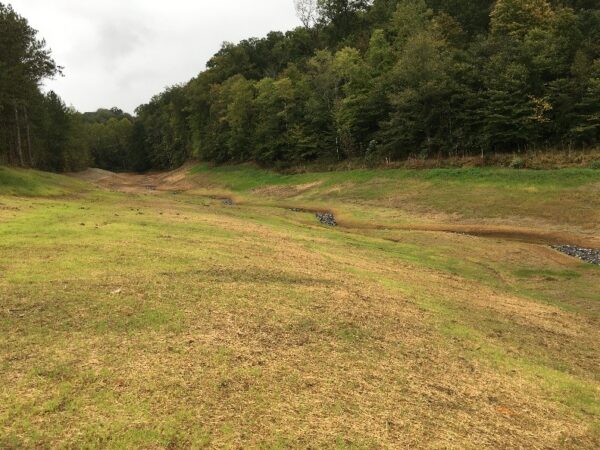 The final natural stream design involved new offline channel using referenced geomorphic hydraulic geometry to allow for a naturally self-adjusting stream. The design promotes stability and sediment transport, making use of in-stream structures, where appropriate, for grade control and habitat enhancement. The mitigation approach also includes two dam removals draining existing ponds at the Hall Branch site in order to restore aquatic and riparian habitat. In all, approximately 5,017 feet of stream was restored resulting in the creation of approximately 3,724.6 mitigation credits. The work orders for this project total approximately $287,000.