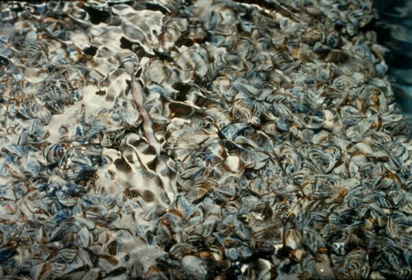 Quagga mussels can spread via boats and barges or by simply floating downriver.