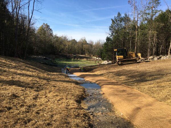 Nyrstar requested a design/build stream mitigation project for the removal of two obsolete mill ponds and creation/restoration of new stream channel on the unnamed tributary to the Caney Fork River. Nyrstar’s Elmwood tailings impoundment needed greater storage volume that required the need to raise the dam. Construction of the proposed dam stages and subsequent placement of tailings would physically impact a stream. Nyrstar must offset the impacts related to the impoundment modifications by constructing a total of 1,615 linear feet of stream and habitat restoration at two locations. The Elmwood Stream Mitigation project involved 720 linear feet of an unnamed tributary to the Caney Fork River at Nyrstar’s Elmwood mine property in Smith County, Tennessee.