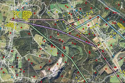 A Geographic Information System (GIS) (ESRI ArcMap) was used to create a constraint database from existing digital spatial data. Non-digital data sources were georeferenced and digitized within ArcMap and then added to the constraints database. Using the constraints database and the geoprocessing and analytical functions of GIS, CEC created alternate transmission line routes that avoided or minimized impacts to known constraints. CEC joined the client’s engineers in a field reconnaissance of the study area to refine the proposed alternate routes and to identify and verify constraints data. CEC then enumerated and fractionally ranked the constraints data for the alternate routes to identify the routes with the lowest number of constraints overall. The constraints data were then compared for the top-ranked routes to determine which constraints were most significant in the calculation of the rankings. Additional factors considered in the selection of the preferred route included existing land cover and potential future land use. The LRE analysis resulted in the selection of a preferred transmission line route.