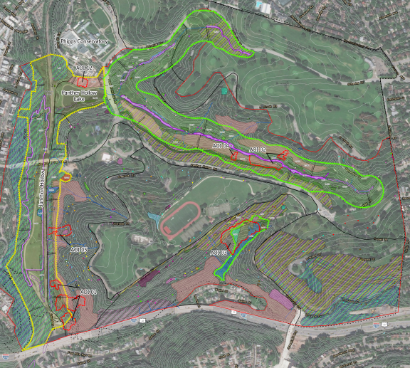 CEC used a combination of high-technology tools and experienced field staff to address concerns of PPC erosion, landslides, forest stability, and invasive plants. CEC used ultra-high-resolution LiDAR scanning from drones and GIS to identify areas of past and recent landslides, and then geotechnical engineering staff followed up on foot to confirm conditions. CEC ecologists surveyed native, non-native, and invasive plant communities throughout the park and developed prioritized vegetation management and restoration plans that dovetail with PWSA stream daylighting plans. In an area of the park where a tree nursery was contemplated, CEC ecologists, soil science, and engineering staff conducted an extensive evaluation of soil properties for stormwater management and nursery development and developed schematic plans for beneficial use of stormwater for irrigation of the nursery, which was built and planted in the fall of 2019.