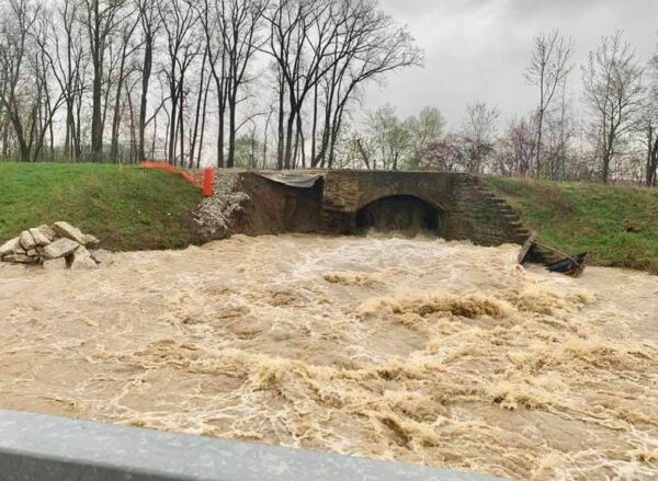 After the initial wing wall failure, the aqueduct was again jeopardized by back-to-back extreme spring floods that washed away much of the temporary stabilization and further damaged the structure. The ODNR asked CEC to mobilize an around-the-clock emergency response to monitor the structure for signs of failure and to immediately report, if necessary, a structural failure to protect those located downstream from a potentially catastrophic flood. CEC designed a method to:
