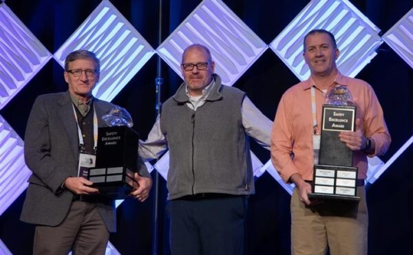 Corporate Safety Director David Parise (center) presents the 2022 Safety Excellence Awards to Athens Office Lead Todd Babcock (left) and Bridgeport Office Lead Steve Cain.